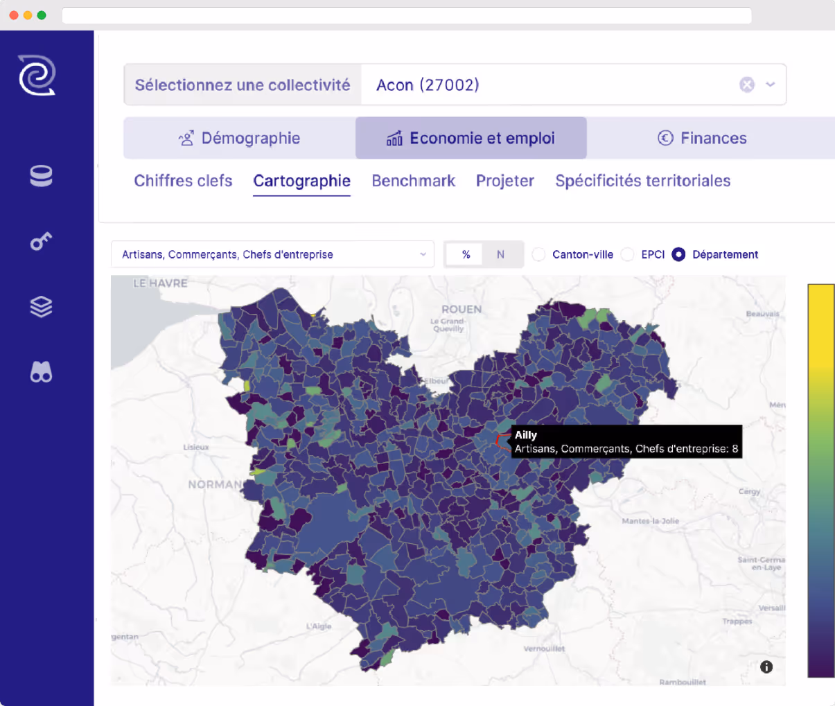 Accédez à toutes les données territoriales dans un seul outil : simplifiez vos démarches, gagnez du temps et pilotez vos décisions avec plus d’efficacité.